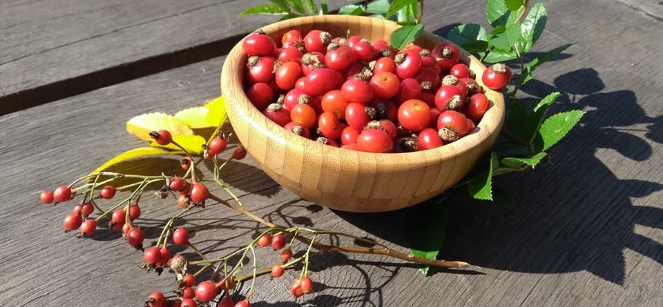 An so einem sonnigen Sonntag habe ich Hagebutten in meinem Garten geerntet.